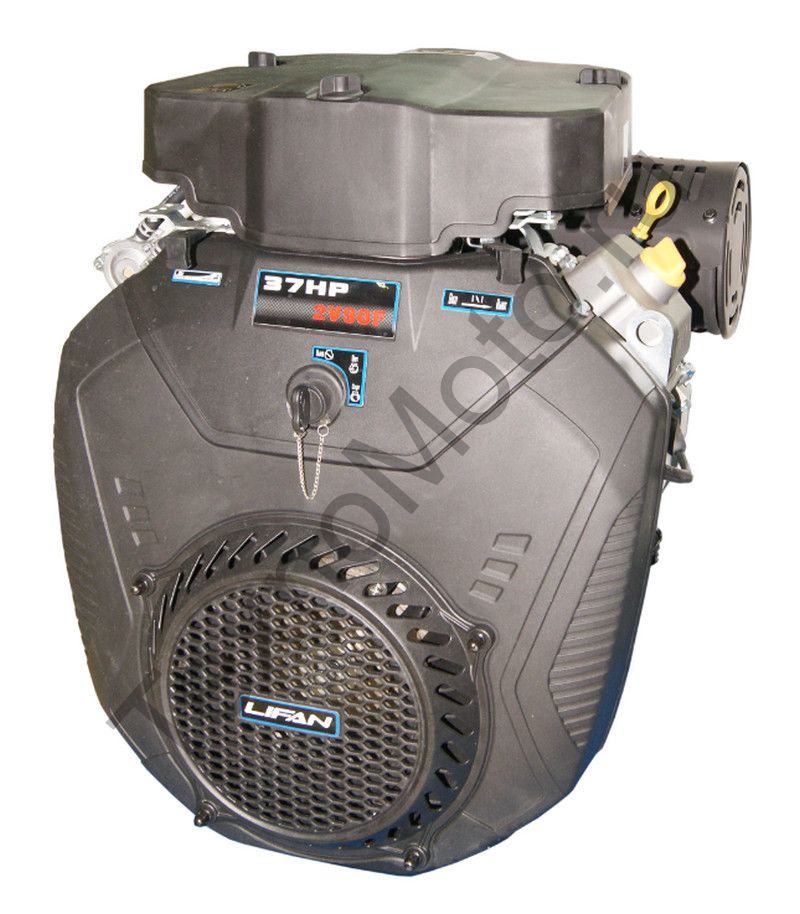 Lifan LIFAN 2V90F mecanical (37 л. с.) с катушкой освещения 20Ампер (240Вт) V-образный четырехтактный бензиновый двигатель с электростартером, мощность 37 л. с., диаметр выходного вала 25 мм.